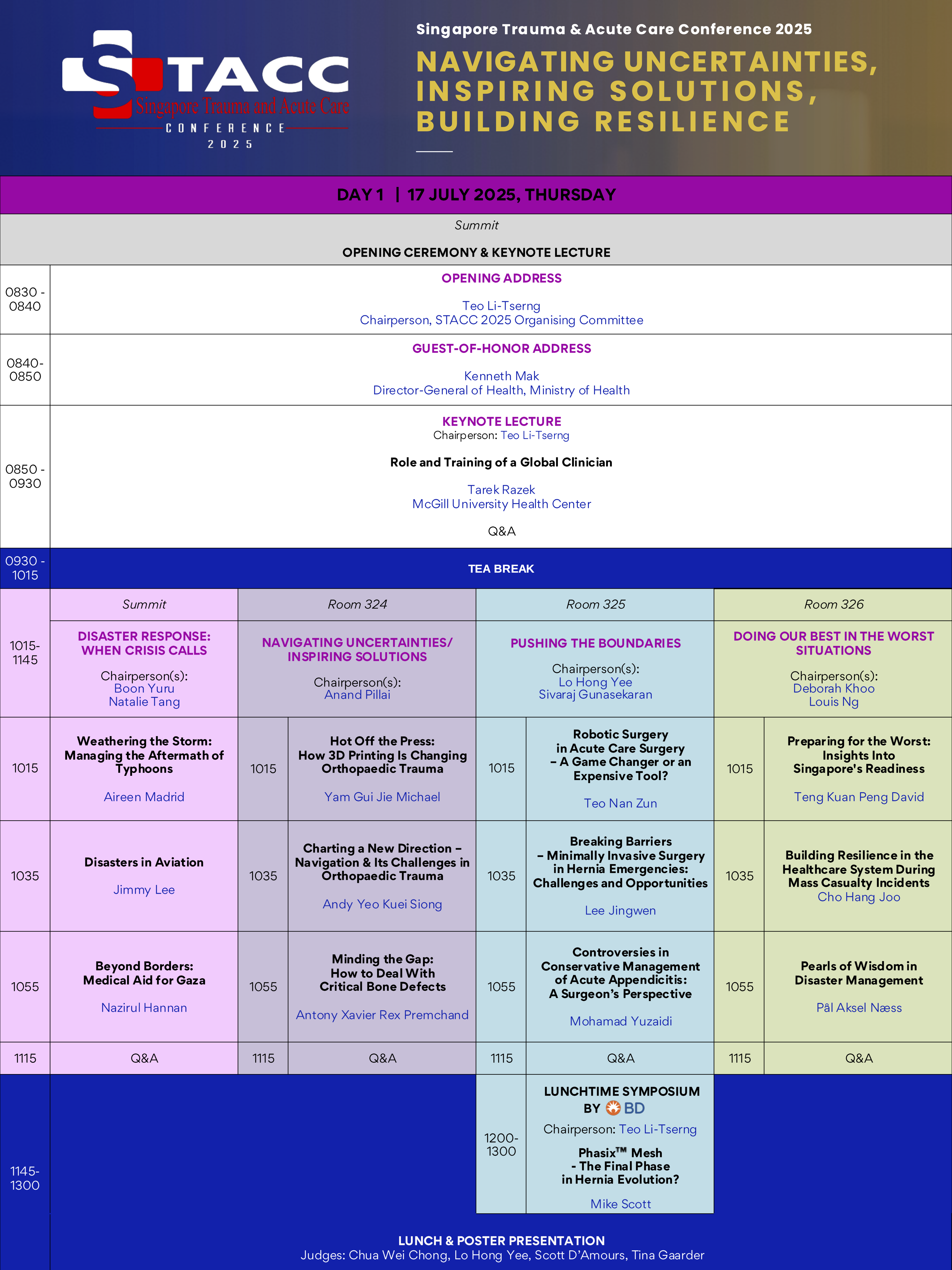 STACC 2025 invites you to delve into a dynamic lineup of scientific tracks tailored to address the pressing challenges and innovations in modern healthcare. From Critical Care and Anaesthesia to Emergency Medicine, Pre-Hospital Care, Acute Care and Trauma, our programme spans the breadth of multiple disciplines, ensuring something for every practitioner.